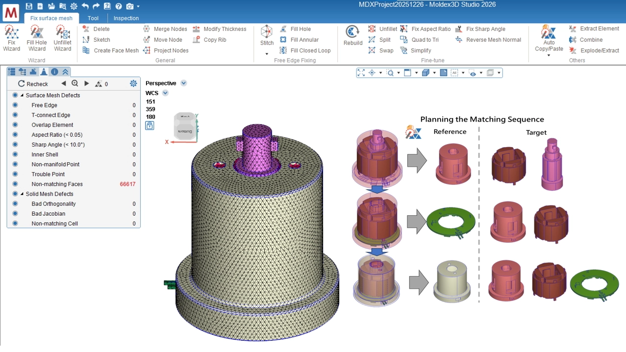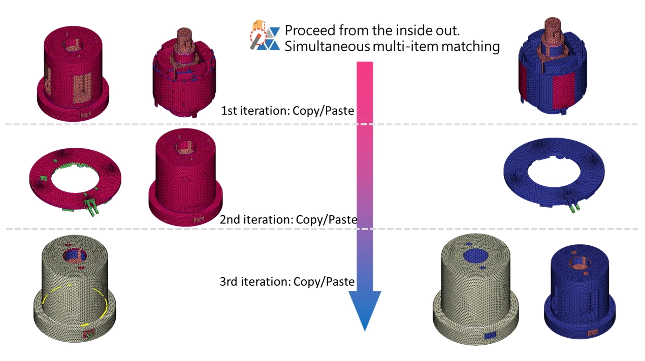 Before constructing matching mesh, decide the matching sequence for different insert meshes. Match internal inserts first and proceed from the inside out.