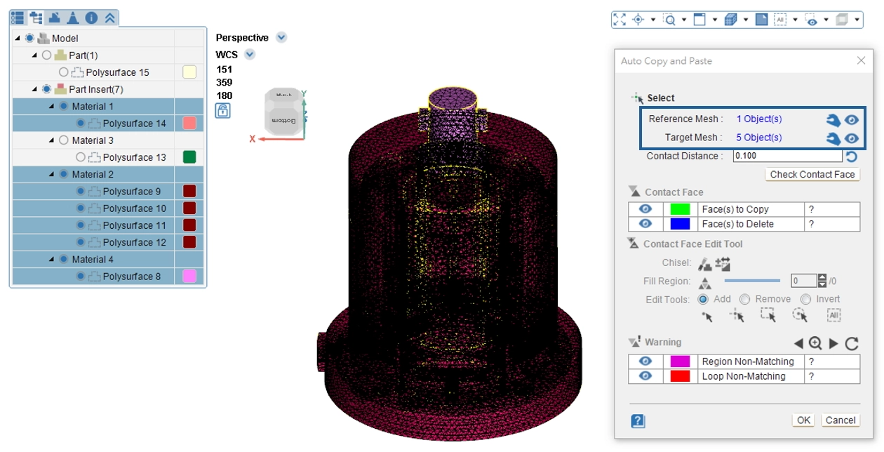 Use the Auto Copy/Paste function. First select the reference mesh, then select the target mesh, and click Check Contact Face.