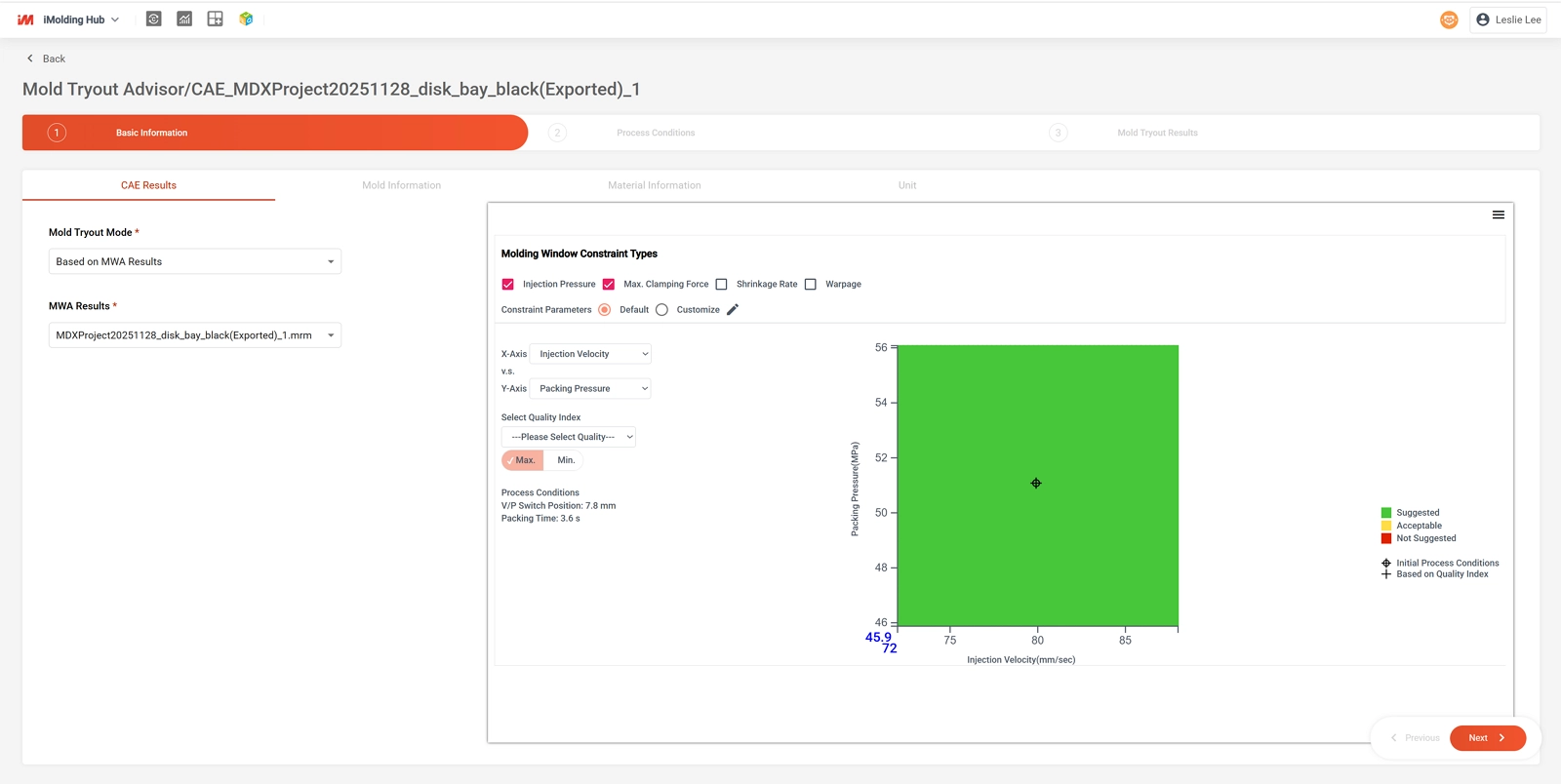 - Molding Window Advisor (MWA) Analysis Results