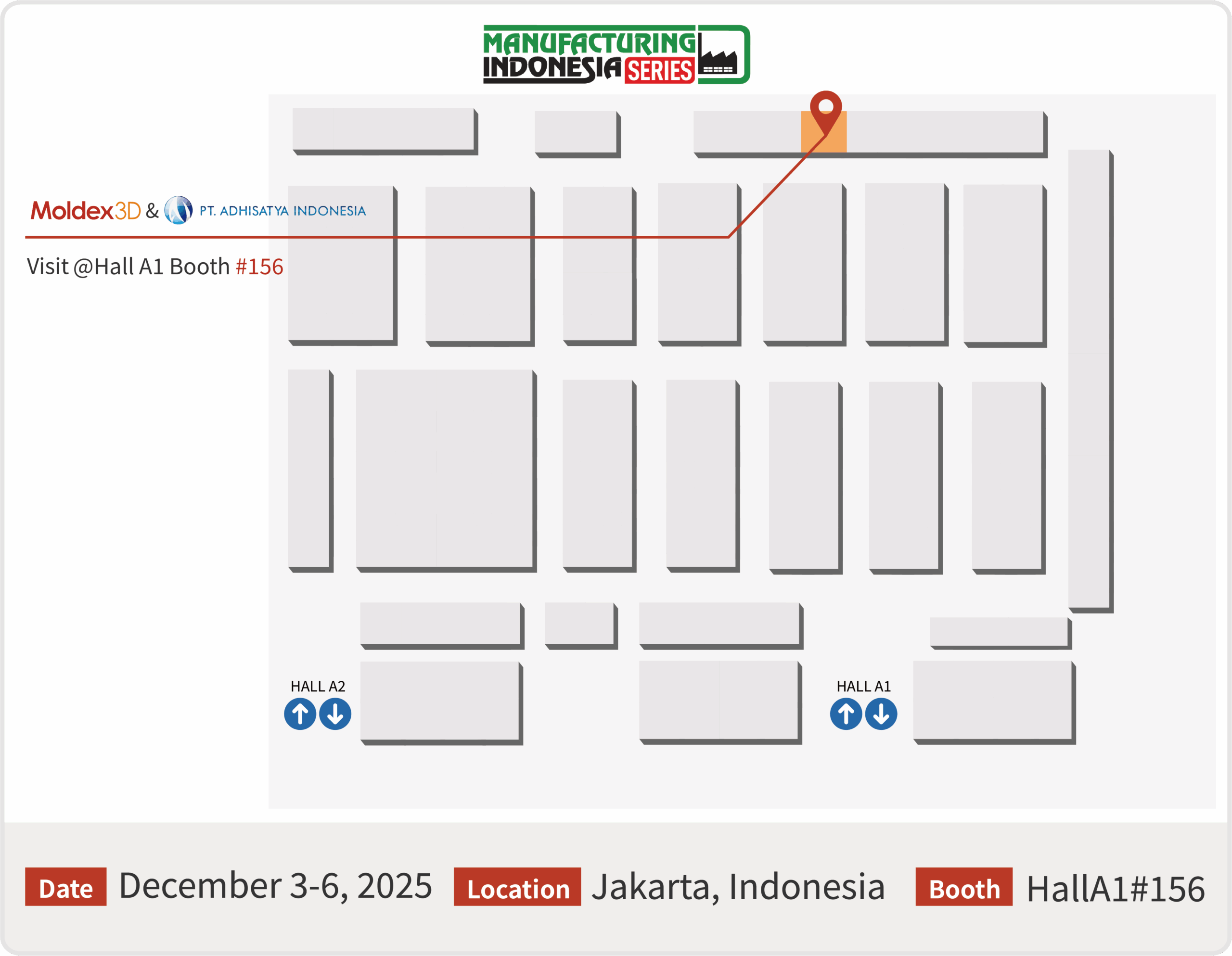Kunjungi kami di Hall A1, Booth 156, pada 3–6 Desember, dan temukan bagaimana Moldex3D membantu industri manufaktur Indonesia menuju masa depan yang lebih canggih, berkelanjutan, dan berbasis data.