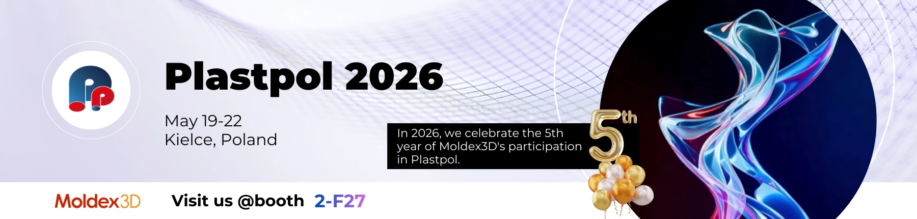 W 2026 roku świętujemy 5. rok udziału Moldex3D w targach Plastpol. Zarejestruj się i odwiedź nasze stoisko, aby otrzymać bezpłatny 90-dniowy dostęp do Material Hub Cloud. To doskonała okazja, aby przetestować możliwości platformy, usprawnić dobór danych materiałowych do symulacji oraz skonsultować swoje przypadki z naszym zespołem.