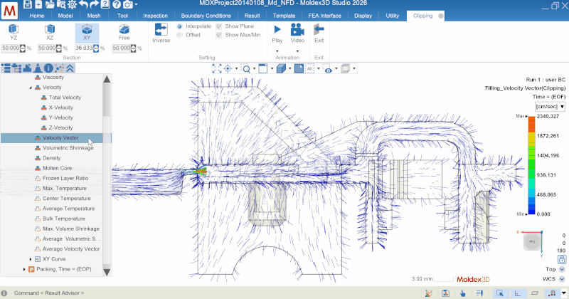 Moldex3D 2026 eliminates this trade-off with the new Hot Runner Branch Outlet Calculation, allowing complex hot runner systems to be analyzed using line-defined models. This dramatically shortens computation time while maintaining results consistent with full models. As cavity count increases, acceleration can reach four to tens of times faster, enabling rapid evaluation of flow balance and pressure distribution and allowing engineers to assess molding quality before the molding trial begins.