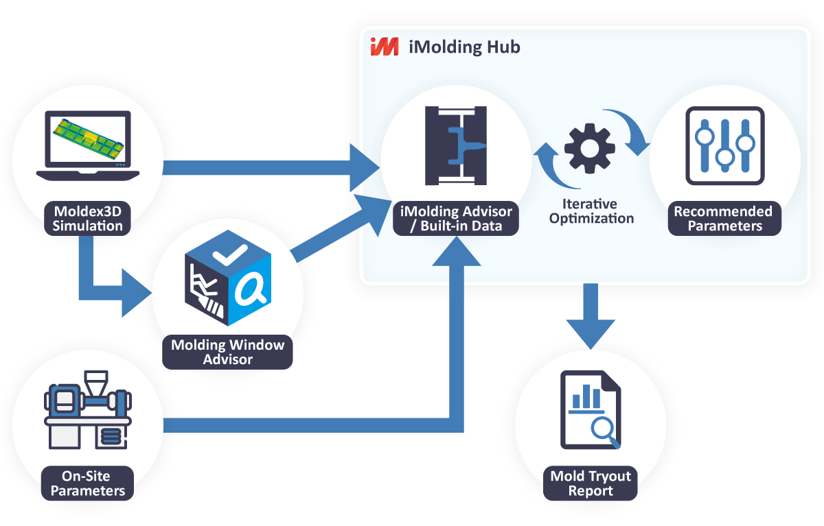 iMolding Advisor replaces experience-based mold tryouts with data-driven guidance. Starting from Molding Window Advisor, users can directly transfer optimal parameters into iMolding Advisor to obtain machine-matched settings. It also enables simulations using a built-in database of over 9,000 materials and tens of thousands of machine datasets, allowing early defect prediction and corrective guidance—making trial molding more controllable and efficient.