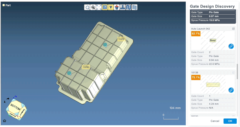 The upgraded Gate Location Advisor works with automatic parting direction detection to recommend optimal gate positions early, reducing trial-and-error and improving design accuracy.