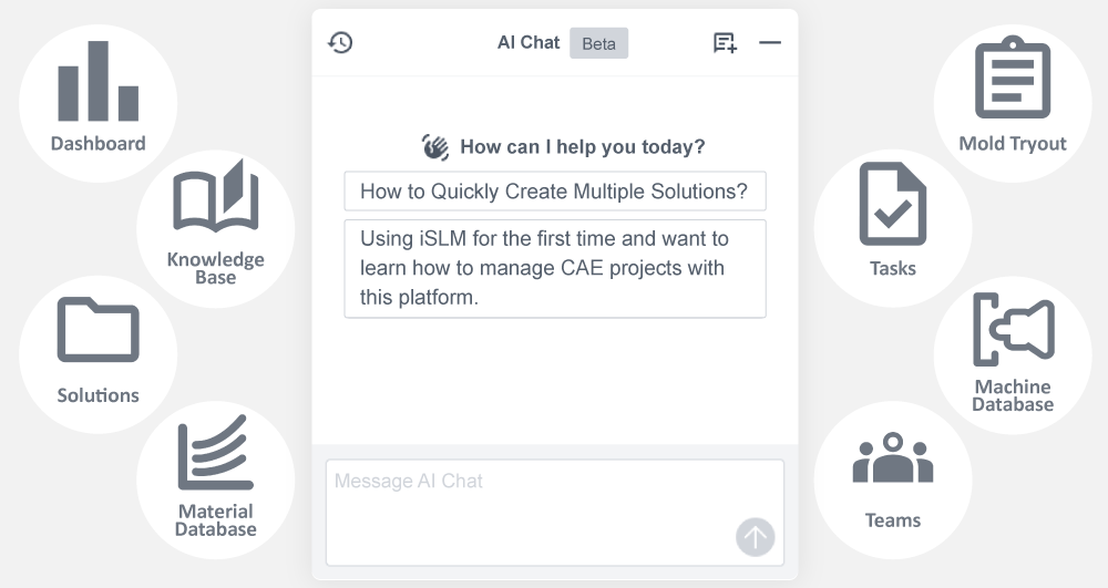 iSLM 2026 introduces AI Chat, enabling engineers to query data, receive conclusions, and obtain molding recommendations through natural language interaction. Each interaction feeds back into the database, continuously improving response quality and building long-term knowledge assets.