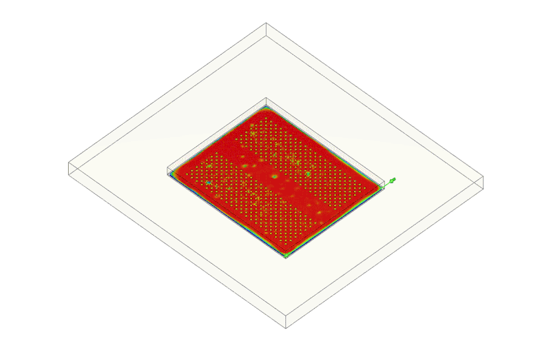 For IC packaging projects requiring maximum efficiency, Moldex3D 2026 introduces the Equivalent Bump Group (EBG) Zone boundary condition technology. With only a single-layer of mesh, the analysis retains essential physics and delivers high-accuracy CUF results, reducing simulation time to nearly 1/15 of a full 3D model—ideal for early-stage design screening, parametric studies, and process window exploration.